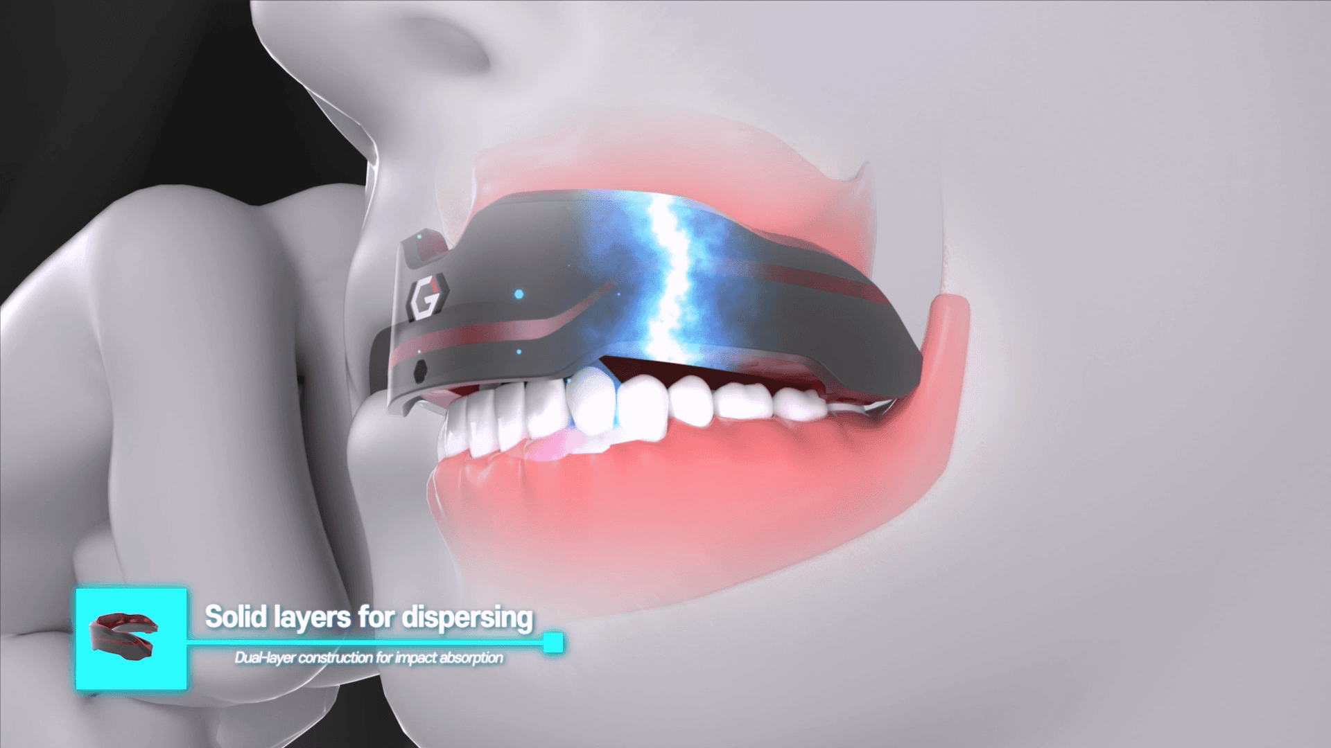 치아를 완벽하게 보호하는 충격 분산 메커니즘, 고헥스 마우스피스 3D 기술 시각화 필름