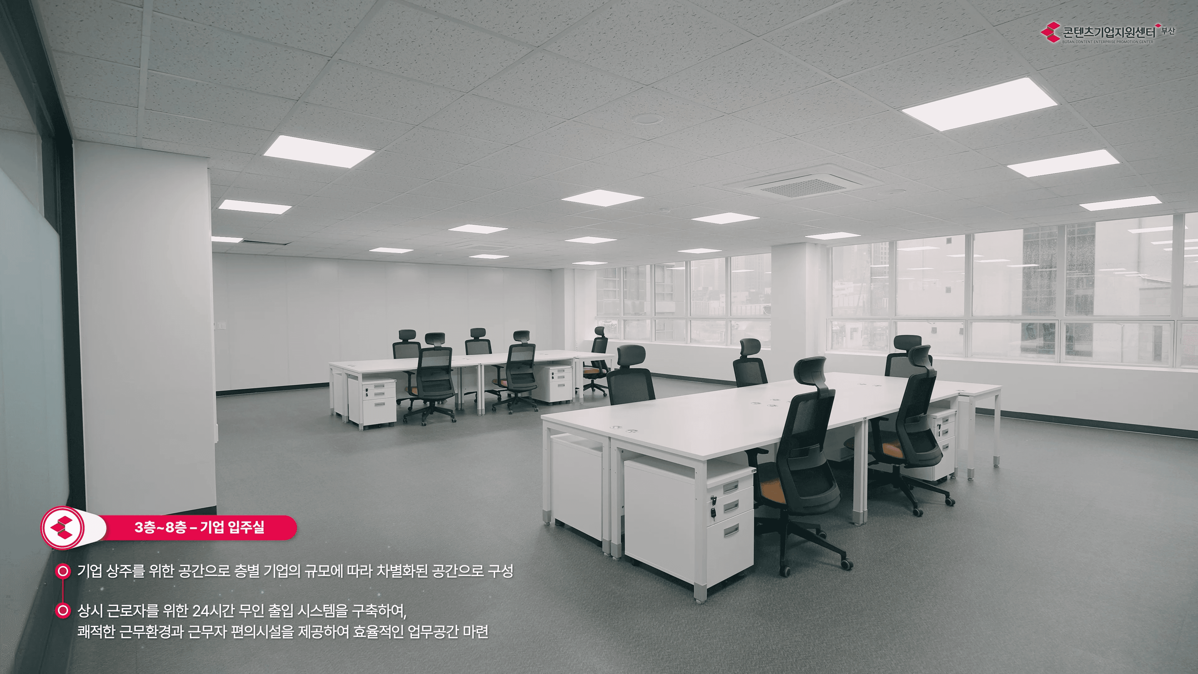 인포그래픽과 실사 촬영, 그래픽 기술을 융합하여 '부산콘텐츠기업지원센터'의 설립 목적과 공간 인프라를 직관적으로 전달합니다. S.S.M(Small, Strong, Many) 전략을 바탕으로 한 원스톱 지원 체계와 지하 1층부터 지상 8층 규모의 스마트 인프라를 시각화하는 데 중점을 두었습니다. 향후 5년간 입주율 95%, Middle 기업 50개사 육성이라는 핵심 비즈니스 목표를 명확하게 브랜딩하여 지역 콘텐츠 산업의 청사진을 제시합니다.